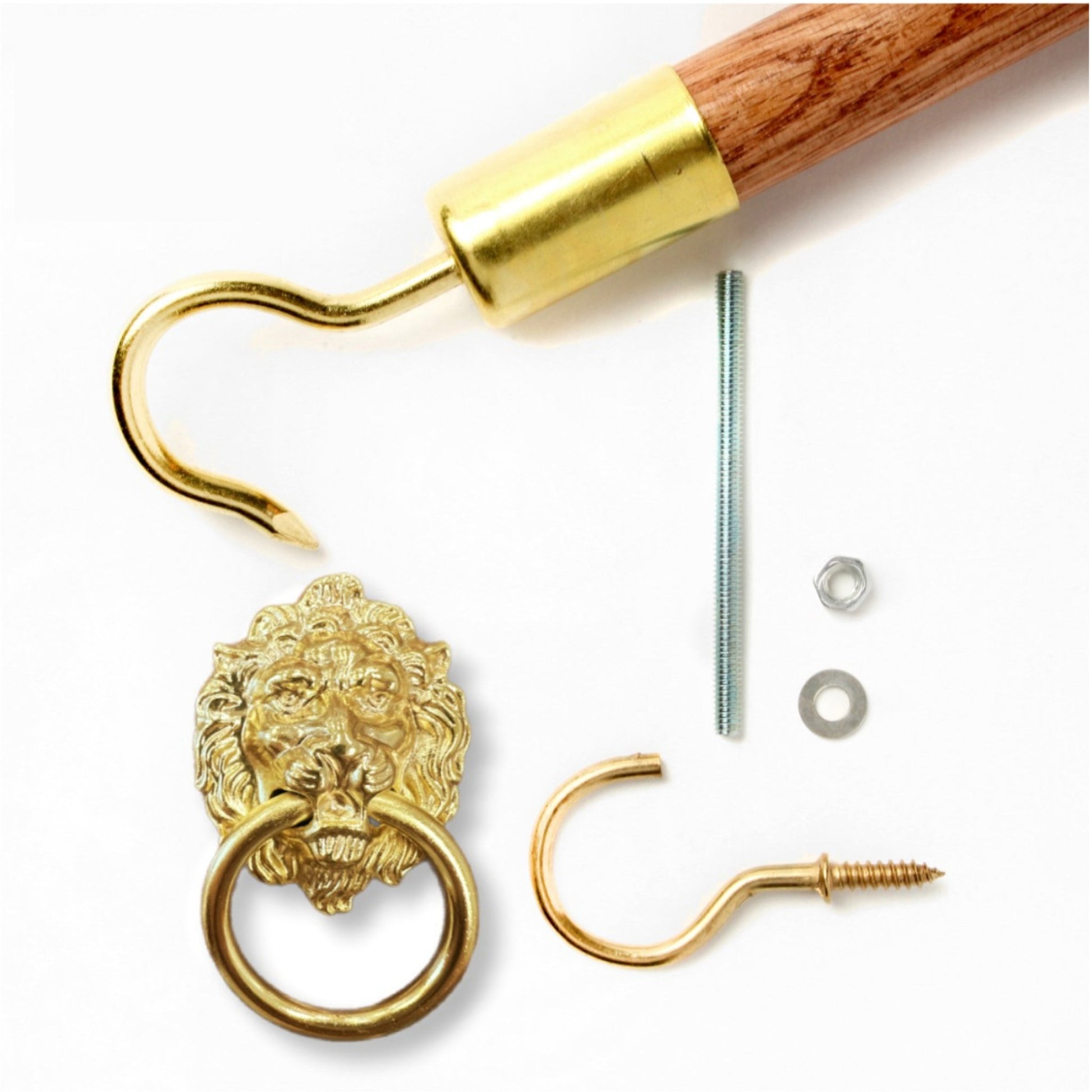 Attic Ease Ladder Pull System Kit - Brass Finish - Lion's Head Pull Ring