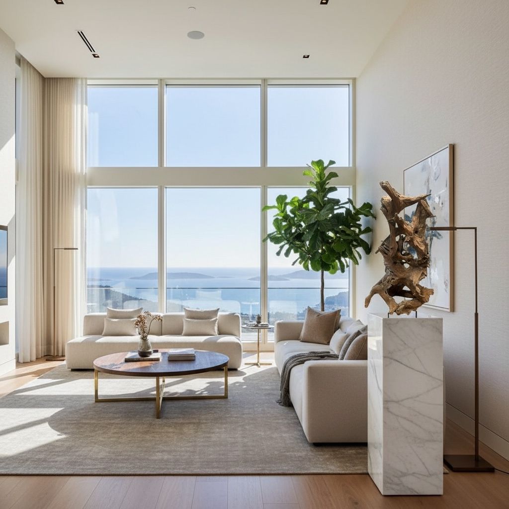 Magnificent one-of-a-kind dramatic driftwood sculpture. An abstract, complex structure that allows the wood's inherent details to be the focal point. It features a gnarled appearance with various hollow spaces, knots, and tendrils that reach upward. It has a natural, striking brown color with a weathered texture, and the play of light and shadow across its surface accentuates its depth.